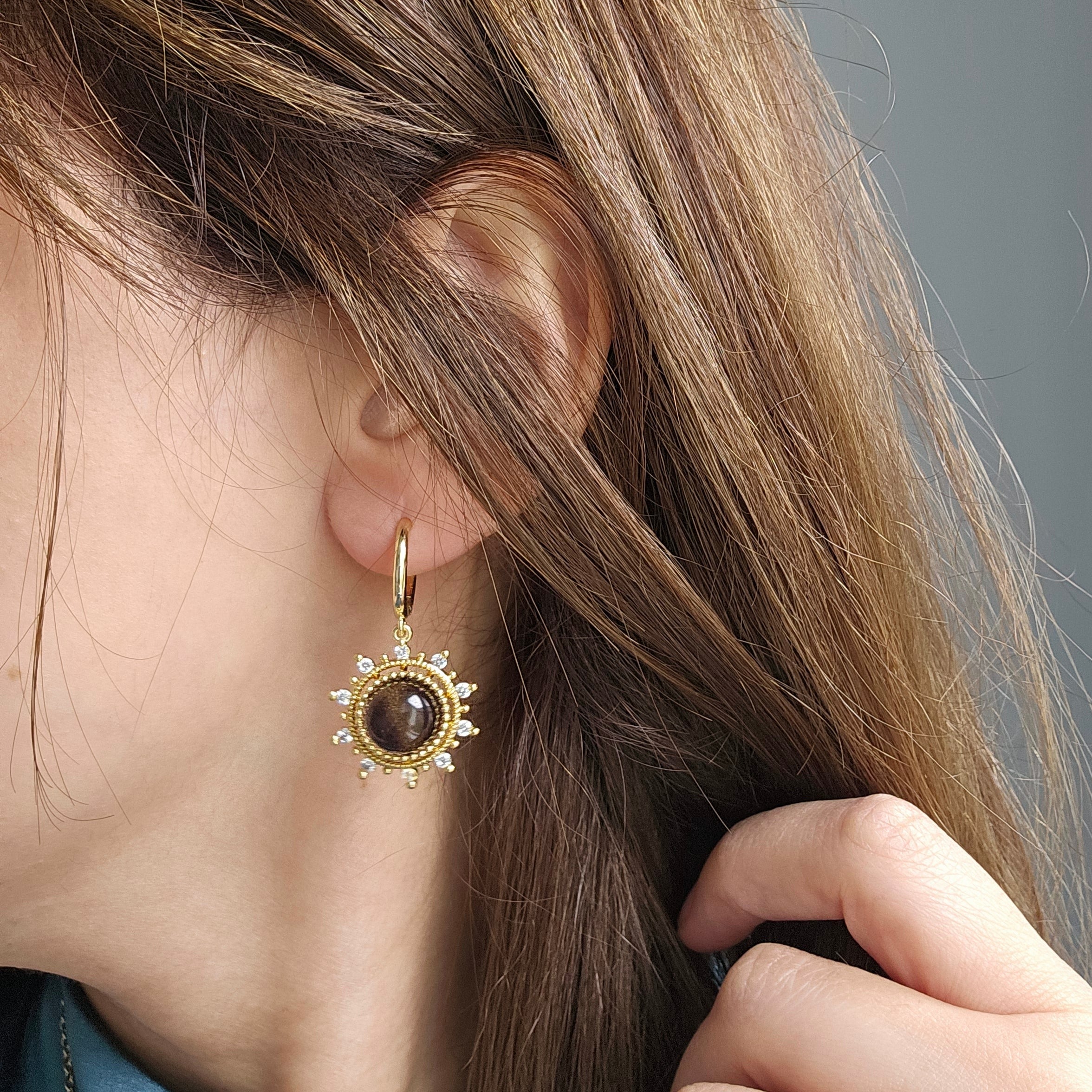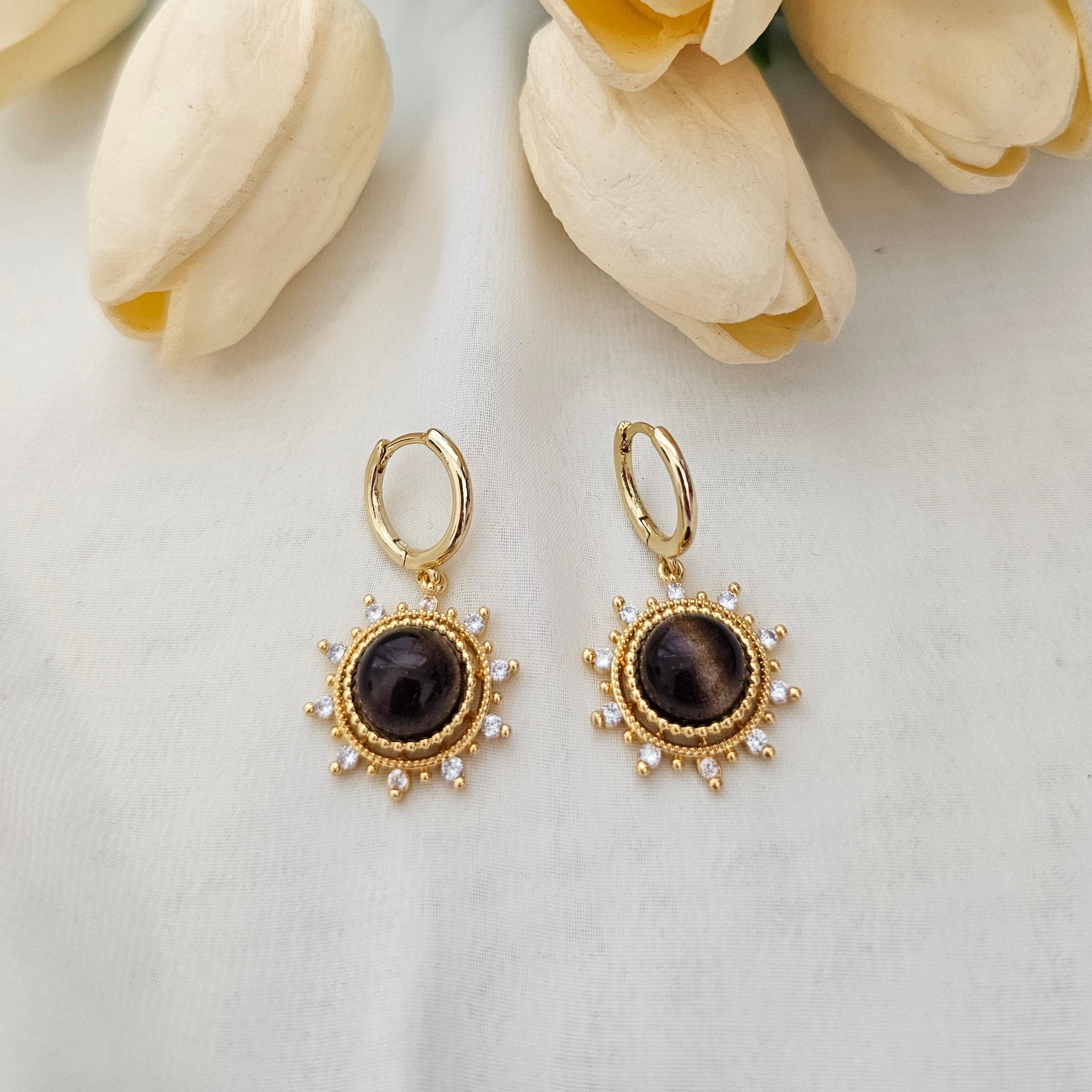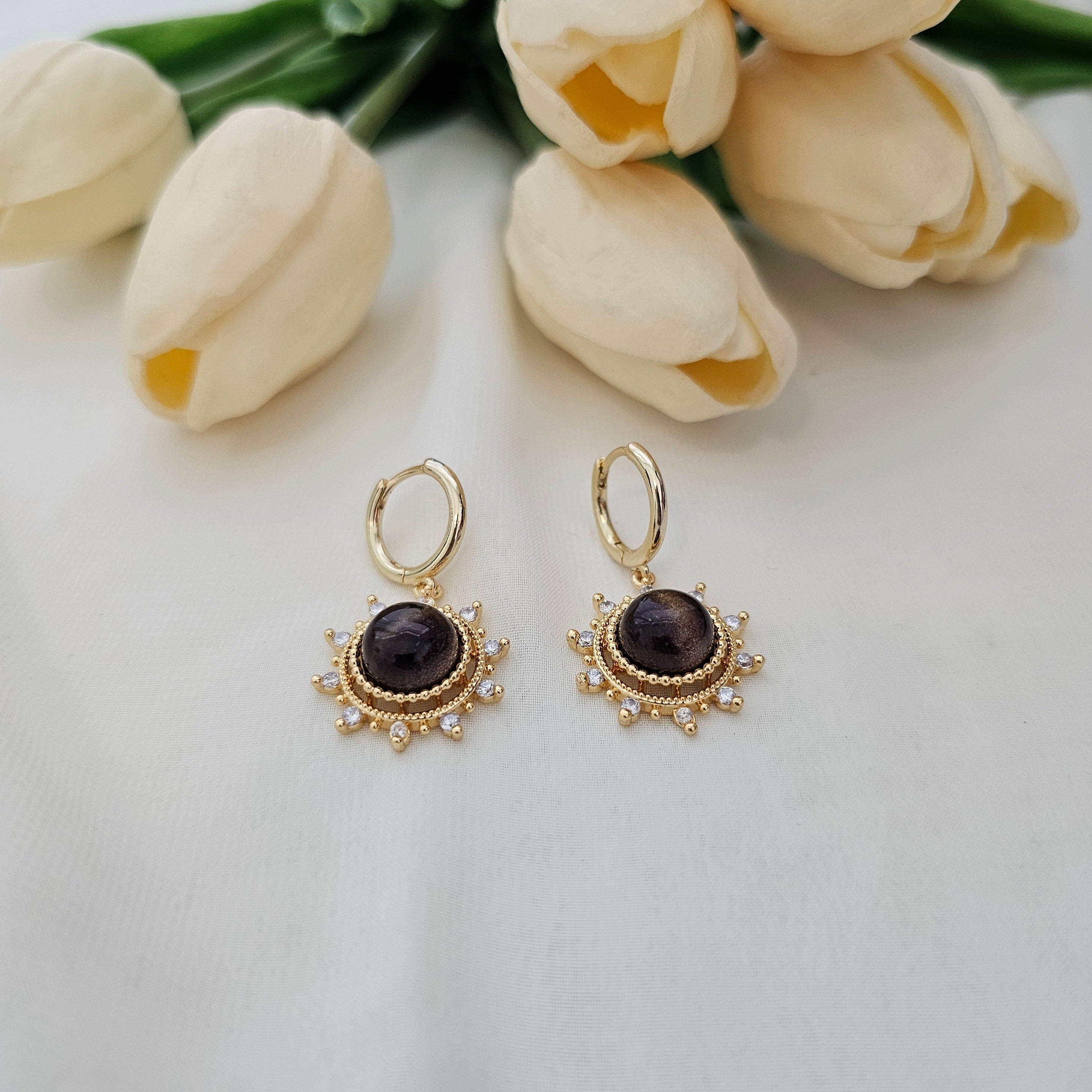 18K Gold Filled Vintage Black Earrings, Hoop Earrings, Black Earrings, Minimalist Earrings, Gift for Her, Minimalist Earrings, gift for mom