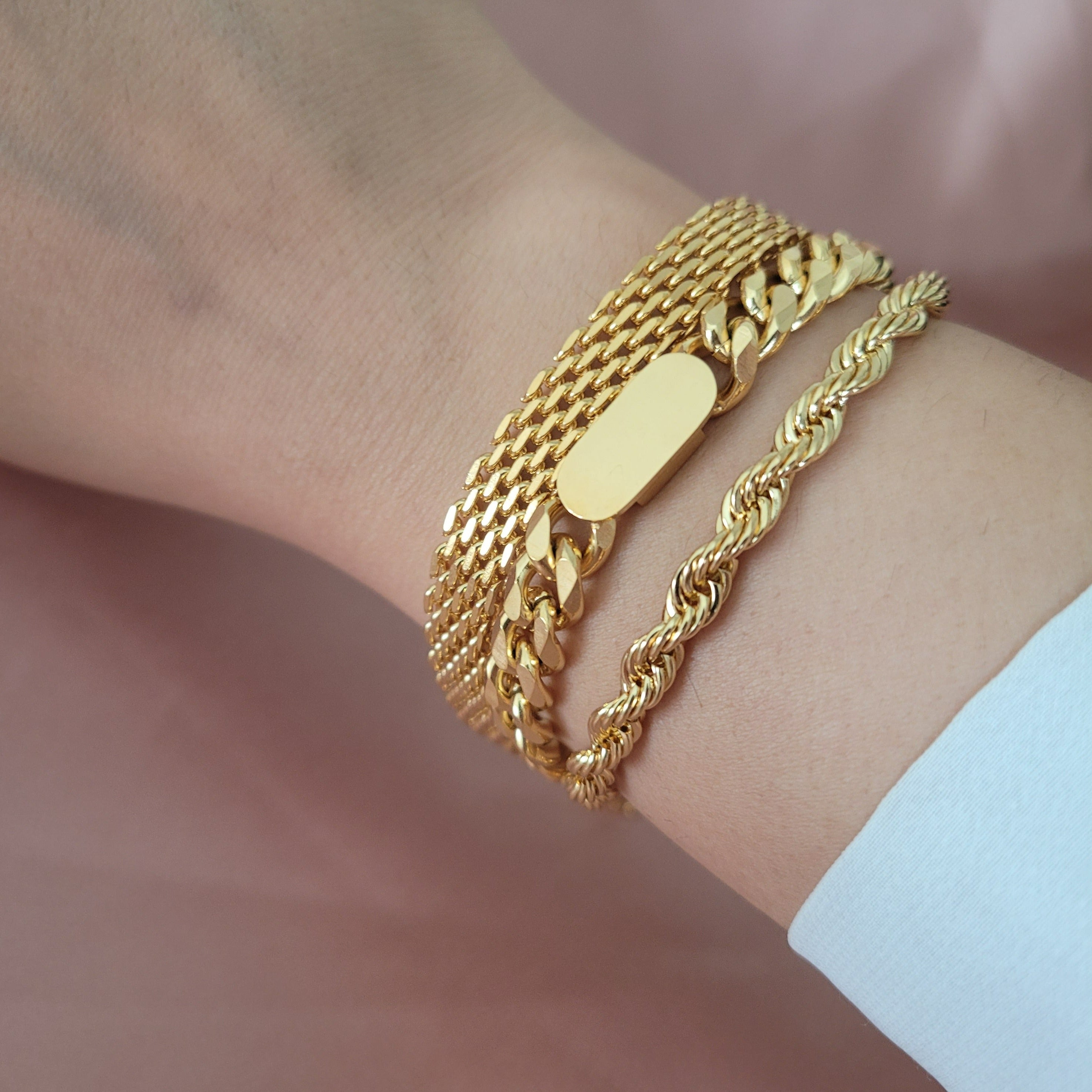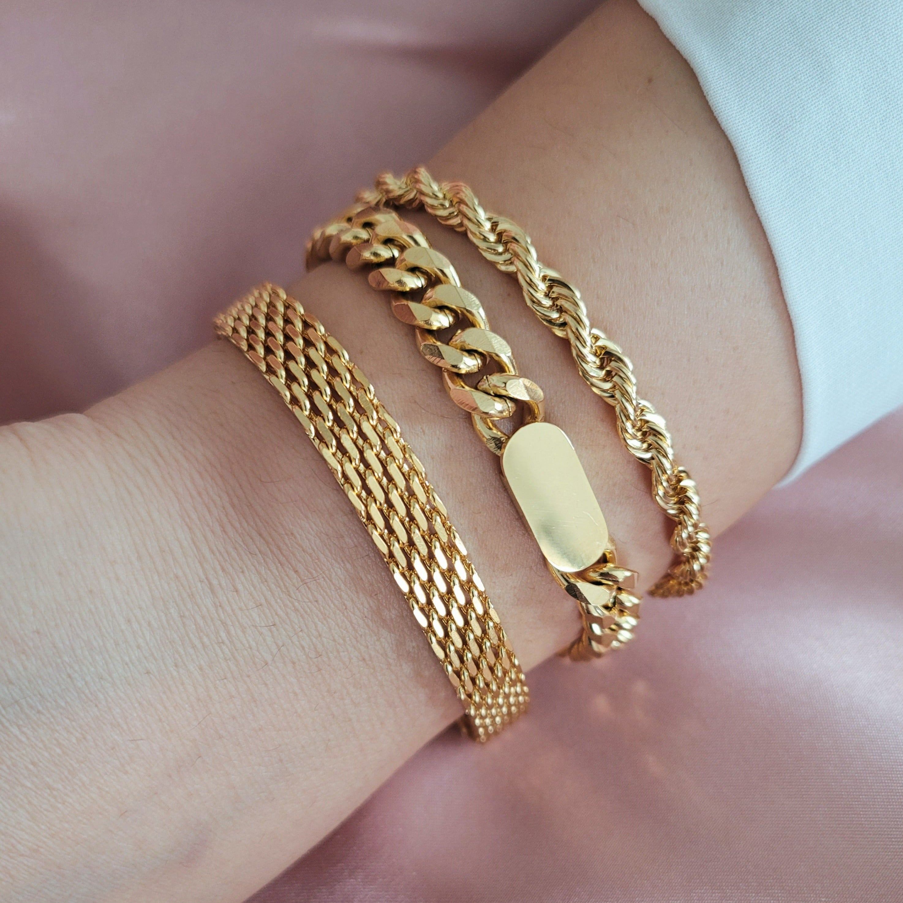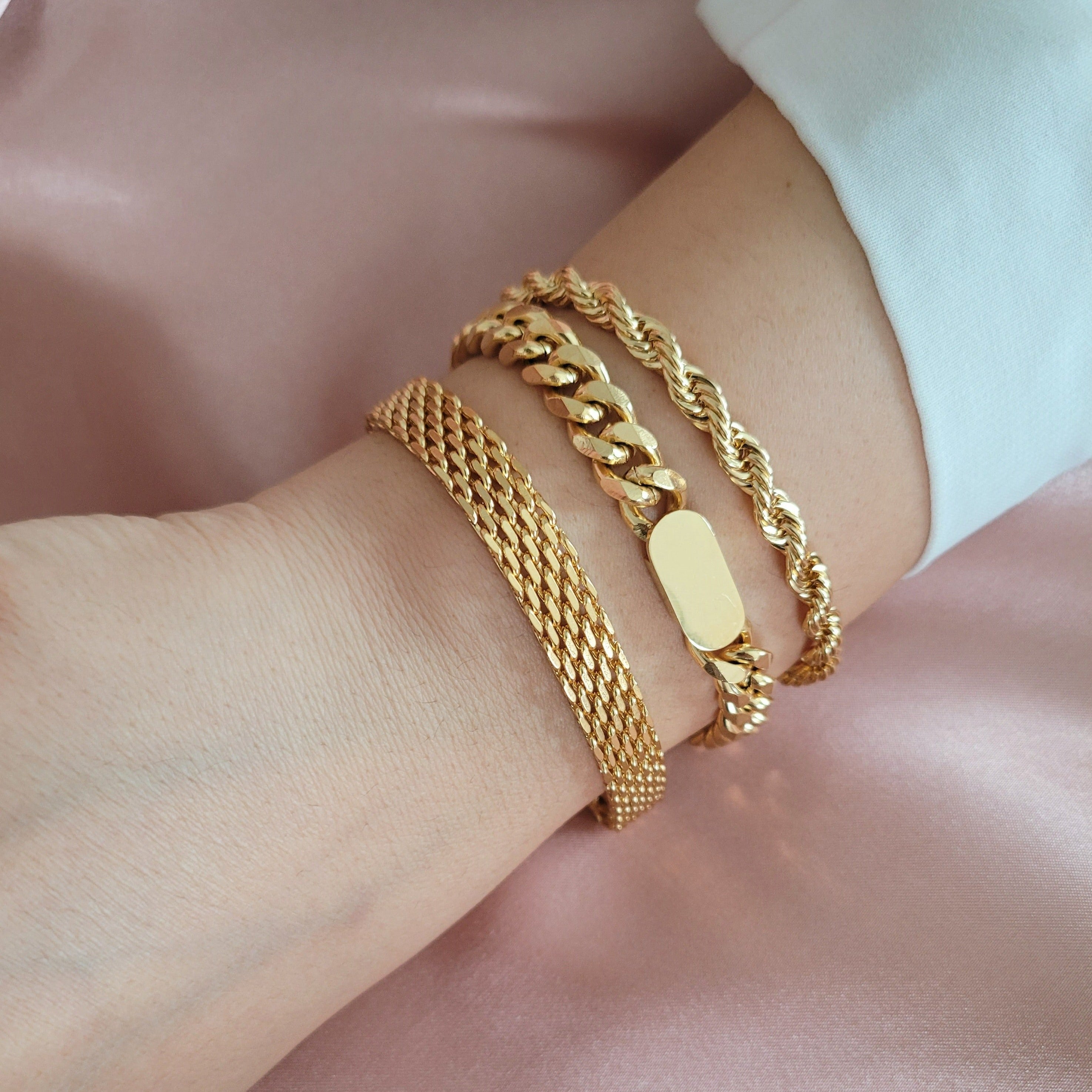 18K Gold Vintage Retro Mesh Bracelet, Stainless Steel Chain Bracelet, Jewelry Bracelet, Women Men Gold Gift, Waterproof Bracelet